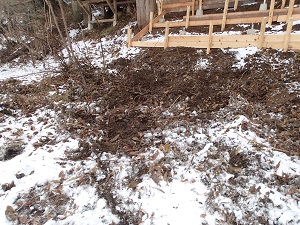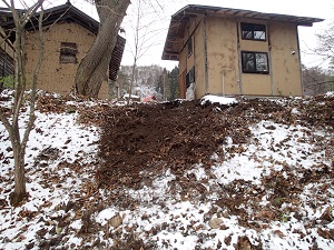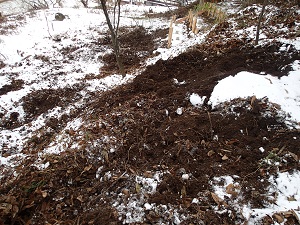 このところ、農楽里ファーム母屋の裏で、イノシシが大きな土木工事!?をしてくれています。。