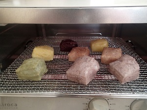 農楽福餅を焼いて、、