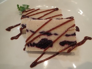 これは、デザートの甘酒とブルーベリーのアイスクリームです。