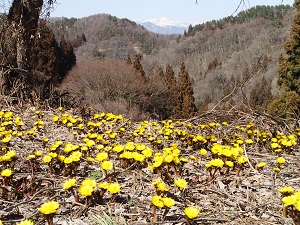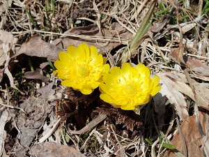 ハウスの作業の帰り道に目にしたフクジュソウの花です。