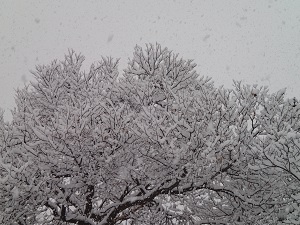 クリの枝にも、雪の花が満開です!