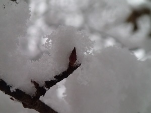 芽吹き始めた木の芽も、この雪にはびっくりですね!