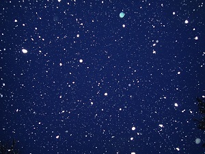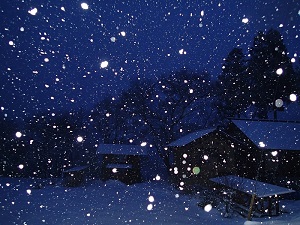 夕方に撮影しました、雪降る夜空の写真です。