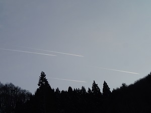 流れ星のようにも見える4本の飛行機雲?