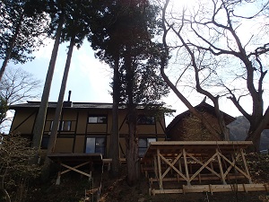 母屋裏の北斜面。下から見上げますと、このような感じです。