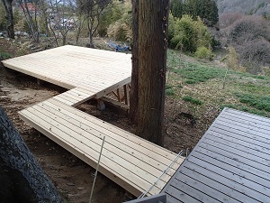 今日は、昨年作りましたウッドデッキに続き、二つ目のウッドデッキが完成しました!