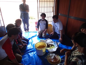 Iさんのご指導で、小学生の子供たちも夢中になって味噌を仕込みました。