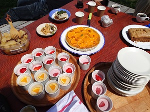デザートは、リンゴとレーズン煮、豆腐のオレンジムース、ローイチゴームース、豆乳のドライフルーツケーキ、