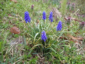 母屋の前の小さなお庭には、ようやく春の花が咲きはじめました。