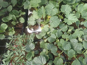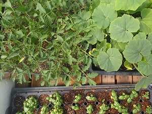 さて、、ハウスの中では、「もうそろそろ外へ出してね、、」と、夏野菜の苗たちが元気に育っています。