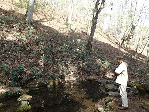 開きはじめたブナの新緑の下、先生は何を感じていらっしゃるのでしょう・・・。