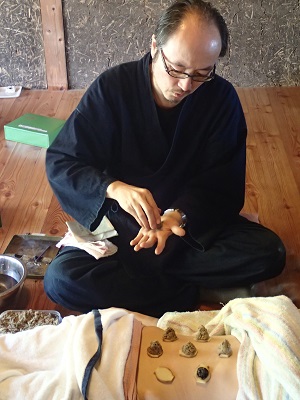 生姜灸の実技指導中。。