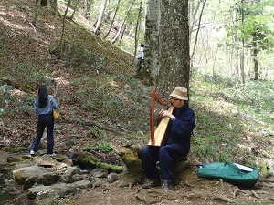 なんとなく、スナフキンっぽい雰囲気!!?の聡哲先生、実はハープの演奏もなさいます。。