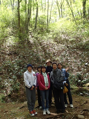 ブナの新緑の下で、皆さんの集合写真。