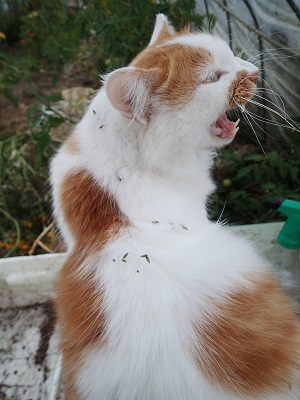 通路沿いには、キャットミント。