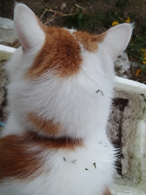 でも、もしかしたら、ミコ太の毛づくろいの際に舐め取られてペッペッと地面に吐き捨てられるか、飲み込まれてしまってウンチと一緒に土に落ちることまで計算しているのかもしれないですね・・・!!