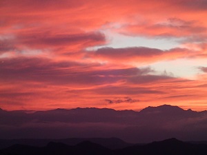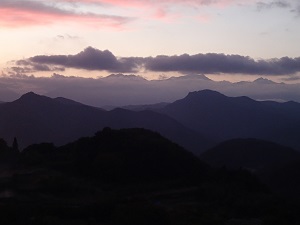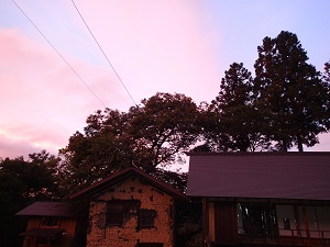 部屋の中が濃いピンクに染まってきましたので、慌てて外に出て撮影をしました。