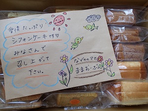 そして今回も、「第一物産」のふぁんさんからは韓国海苔、「ままおーぶん」の北村さんからは、シフォンケーキの差し入れが届きました!