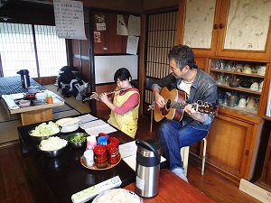 お楽しみ会でギター伴奏をして下さる、仁さんと田中さんはリハーサル中です。