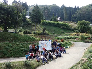 2日間ともとても良いお天気に恵まれ、福島愛育園から子ども15人、職員6人、信州大学「you遊未来」の学生さんとOB、OG19人、そして、ボランティア参加の2人、点と農楽里のメンバー5人の、総勢47人が農楽里ファームへ集まりました!