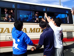 そして福島へ帰るバスを、お兄さんお姉さんが限界まで走って追いかけ、手を振り続けました。。