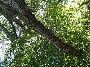 見上げれば、栗の葉からの木漏れ日が美しい、、