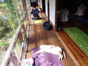 ヨガ初心者ばかりでアトホームな雰囲気の中、皆さん身体をほぐしていきます。。