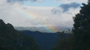 そして、今朝、北信五岳の方向にかかっていた虹の写真です。
