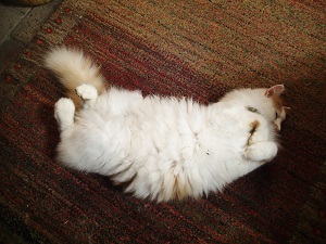 薪ストーブも炊きはじめましたので、ギャッべの上にて大胆不敵なリラックスポーズ!