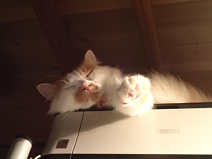 こののんびり感にぴったりの写真は、スキャナーの上のミコ太の寝顔です。