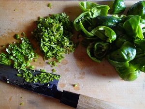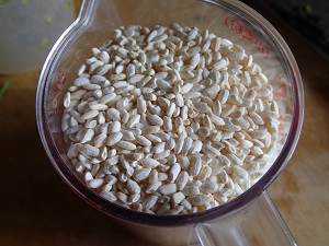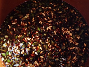 甕に刻んだボタンコショウと米麹を入れまして、、