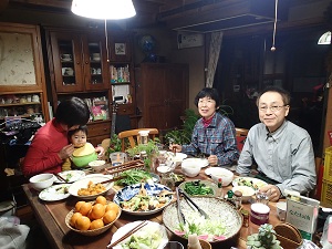 一緒に夕飯を頂きながら、旅の話、世界各地の食材やお料理の話等、楽しい話題が尽きることがありませんでした!!