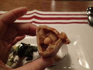 右端のお料理はスープの入ったパイなのですが、パイを手で縦に持ち、スープがこぼれないように頂いていきます。