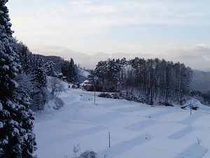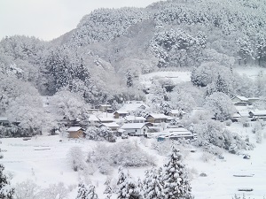 12月に降り積もった大雪がそのまま根雪となり、今、慶師集落はこのような雪景色となっています。