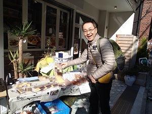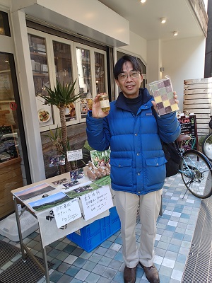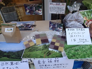 こちらは、入り口前に出店させて頂きました農楽福餅、自然農法のササニシキ、トピナンブールなど。。