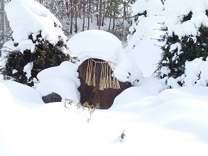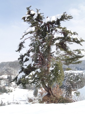農楽里の畑の上の一本松も、雪の重さで枝が折れているようですね、、