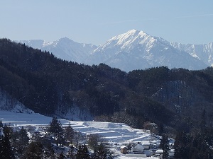 農楽里ファーム母屋の居間から望む戸隠連峰です。