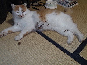 長毛種なので、たくさん引っ付けてしまうのです。。