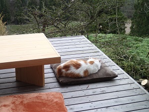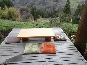ヨガの後のオーガニックランチは、ウッドデッキにて。