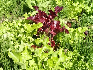 スギナの合間に顔を出しているのは、冬越ししてくれたリーフレタスたち、、