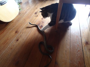 体調1メートル以上もあるヤマカガシを、いったいどうやって咥えてきたのでしょう!!??