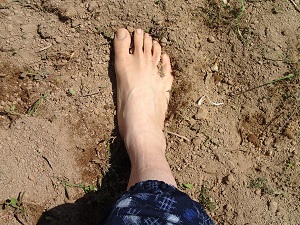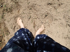 ポカポカ陽気の中、裸足になって畑に立ちました。
