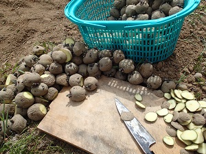 雨が落ちてくる前に、、遅れ遅れになっていましたジャガイモの植え付け作業を行いました。