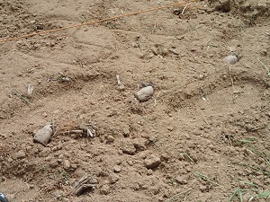 平らな所へ置いて、その上に鍬やトンボで土をかけて、、
