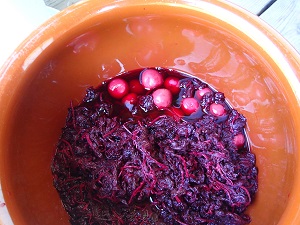 今年、農楽里の梅の木はほとんど実をつけてくれませんでしたので、安曇野のブルーベリー安曇野さんに分けて頂いた梅を使いました。赤シソは、リンゴのトクナガさんに分けて頂いたものです。