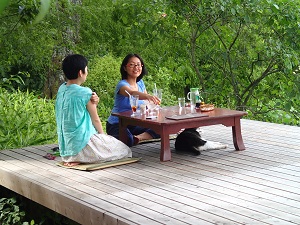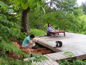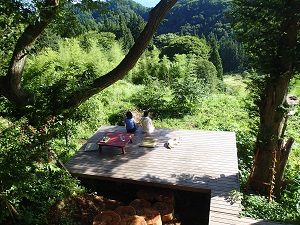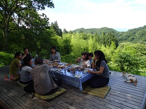 ヨガの後は、ウッドデッキにて戸隠連峰を望みながらの楽しいランチタイムです。。