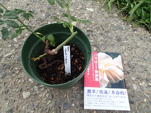 「ソフィーズ・パーペチュアル」というバラの苗とともに、無農薬の薔薇作りにトライしている農楽母さんに、「バラはぜったい無農薬」という本をプレゼントに持ってきてくれたのでした!!