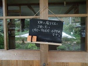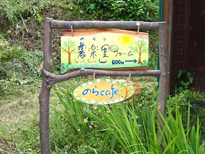 のらcaféの玄関には、「畑ニ居リマス」の小さな黒板がかかっています。。