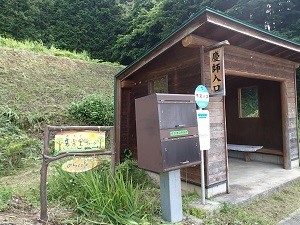 7月7日の「のらcafé」オープンを前に、ようやくのこと、慶師集落入口のバス停留所横に看板が立ちました!