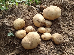 掘り上げましたジャガイモの品種は、キタアカリ。